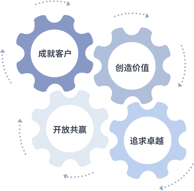 成就客户是一切决策的出发点,,,,创造价值是衡量所有工作的标准,,,追求卓越是亿万先生mr做事做人的态度,,,,开放共赢是亿万先生mr的格局也是最终的结果。。。。价值观的齿轮环环相扣,,推动着组织里的每个人不断向前。。